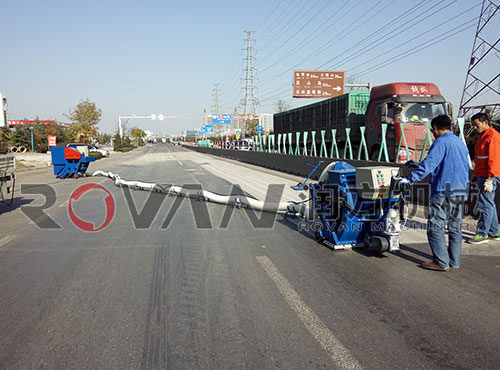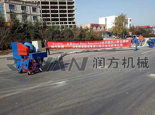 上图为青岛太阳成集团tyc122cc入口机械有限公司路面抛丸机在董家口港附属公路施工效果图。