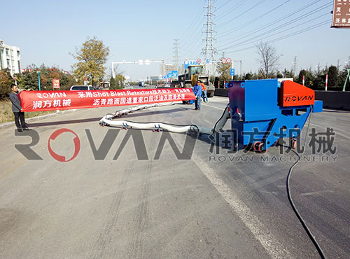 从图上可以看到,我公司生产的路面抛丸机对道路清理效果十分明显,并且操作简单,两个人就能熟练操作,适合各种平整大面积作业,效率高,费用少。